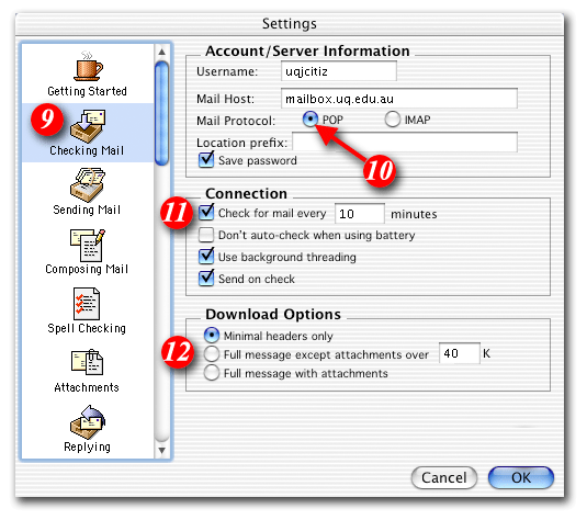 | 11)Tick the 'Check for mail every _ minutes ' checkbox and set it to at least 10 minutes |