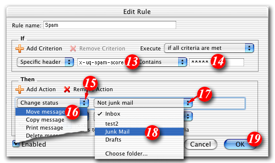 | 18)Select 'Junk Mail' from the drop list |