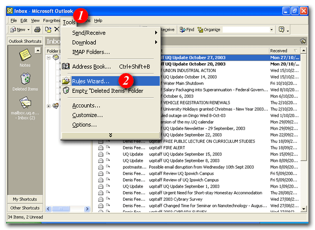 | 2)Select 'Rules Wizard...' from the drop list |
