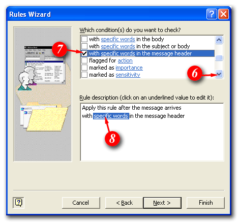 | 7)Put a tick in the 'with specific words in the message header' checkbox |