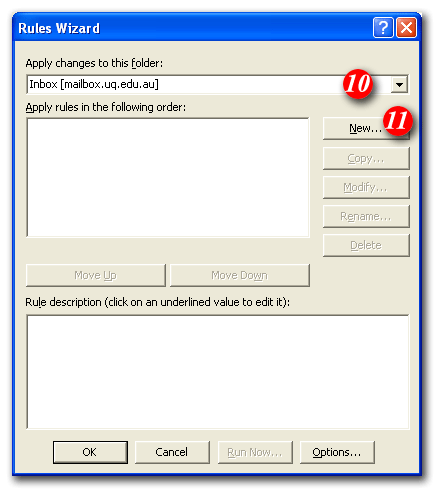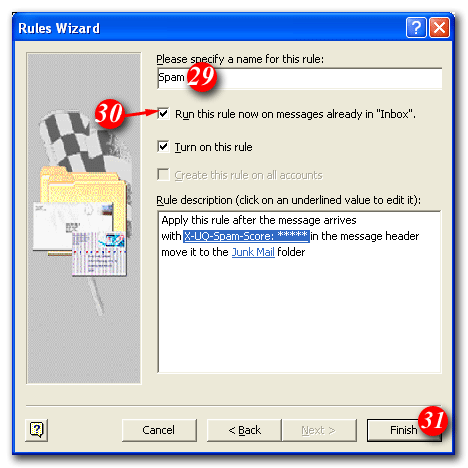 30)Put a tick in the 'Run this rule now on messages already in the "Inbox"' checkbox (optional)