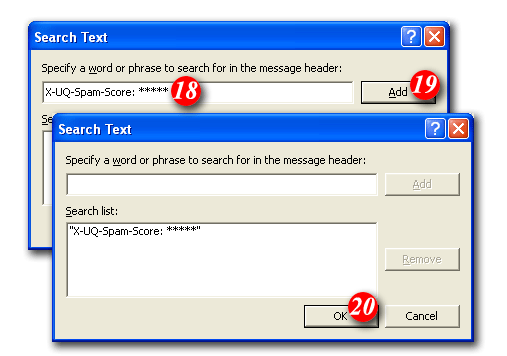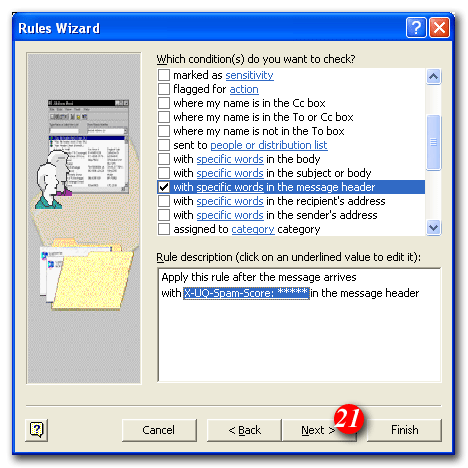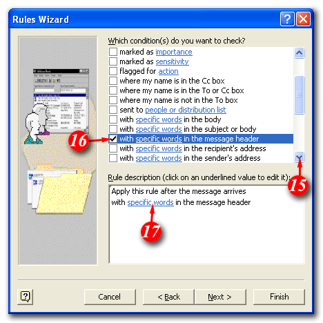 16)Put a tick in the 'with specific words in the message header' checkbox