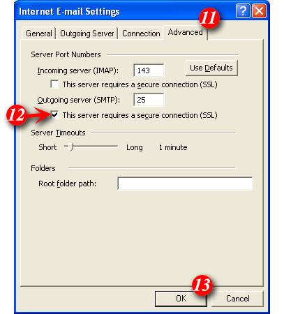 Your account in Outlook XP is now configured to use SSL